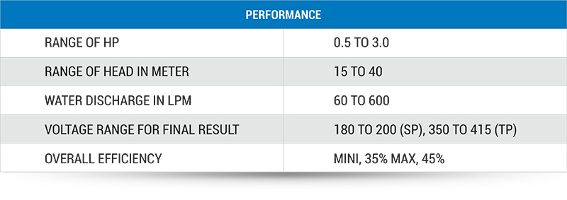 Following are the salient features of Submersible pump sets with Water filled Motor.